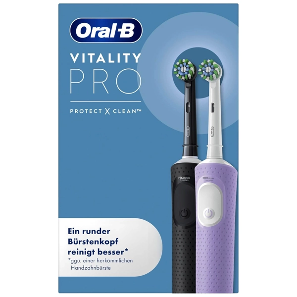 De Oral B Vitality in kleuren zwart en paars is uitstekende keuze voor wie twee tandenborstels zoekt. Met de bekende 2D-techniek oscilleert en roteert de borstelkop om tandplak effectief te verwijderen en de ingebouwde 2-minuten timer zorgt dat elke mondhoek voldoende aandacht krijgt. De Vitality biedt eenvoud, betrouwbaarheid en effectiviteit voor een vriendelijke prijs. Als je meer comfort wilt en extra bescherming voor je tandvlees, zoals een druksensor die waarschuwt bij te hard poetsen, dan is de Oral-B Pro een verstandige keuze.