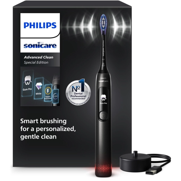 Daarnaast heeft de tandenborstel een nieuw uiterlijk gekregen. Met zijn strakke zwarte finish en geavanceerde technologie biedt deze tandenborstel een krachtige, maar zachte reiniging die zowel je tanden als tandvlees effectief verzorgt. Wat deze Advanced Clean tandenborstel echt onderscheidt, is de combinatie van slimme sensoren, meerdere reinigingsstanden en een overzichtelijk display op het handvat.